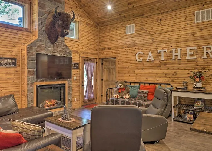 Relax Fireside Family-Friendly Branson West Cabin has an equipped kitchen, provided with a toaster, an oven, and a cooktop. The closest airport is Branson, MO, which is 35 km from this accommodation. You can indulge in an outdoor swimming pool or rent bicycles and explore the beauty of Branson West.